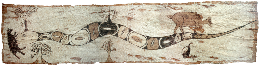 This artwork is related to the territory because it represents the biodiversity and interconnection of life in the Amazon region. By depicting the snake alongside other typical Amazonian animals and plants, the artwork emphasizes how each element of the ecosystem contributes to the vitality and balance of the territory. Furthermore, being created with natural inks on llanchama, a traditional material from the region, the artwork also highlights the deep connection between Indigenous culture and their natural environment.