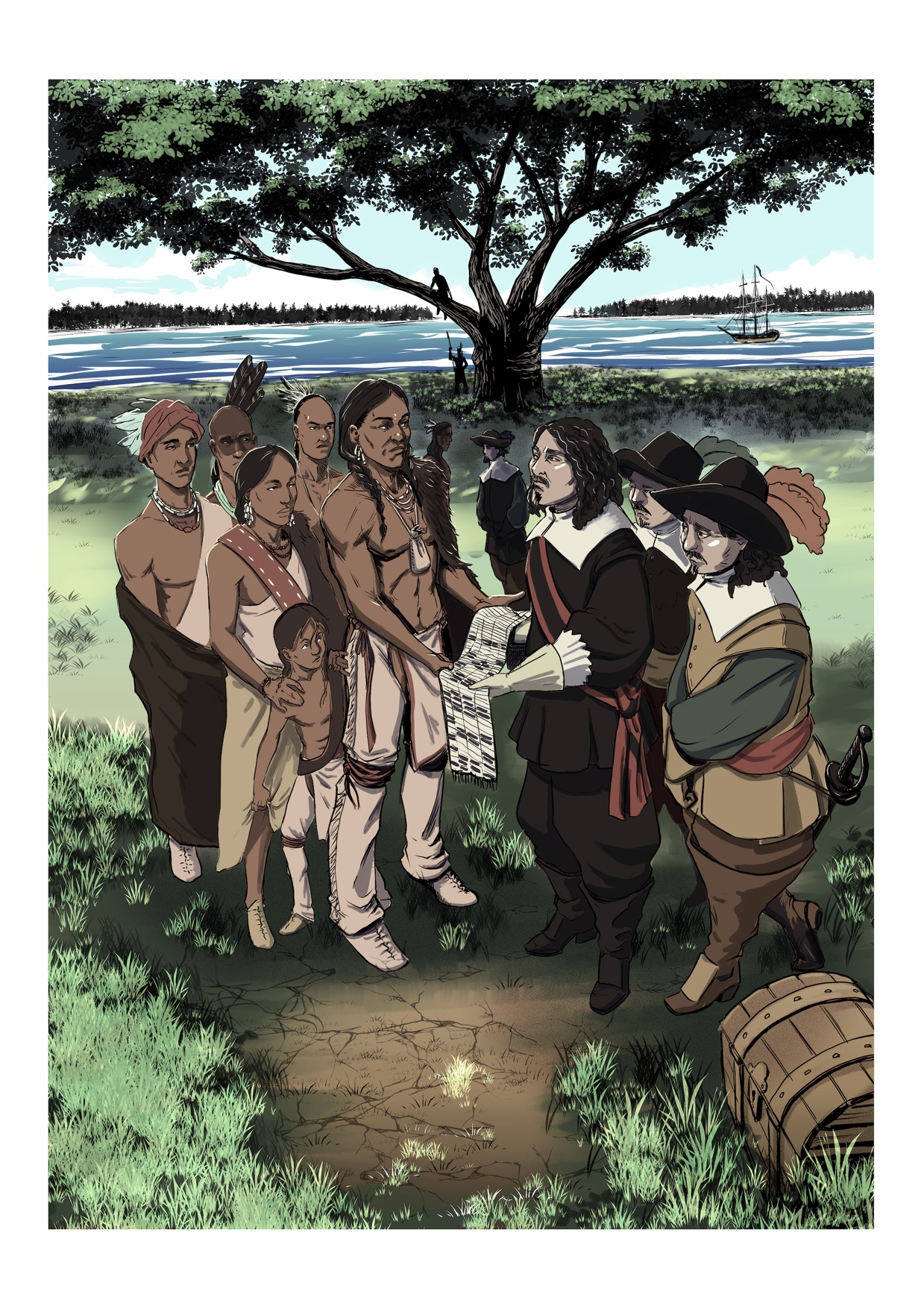Markham, William Penn’s cousin, was governor of the Pennsylvania Colony when he transacted this treaty in the summer of 1682, several months before Penn’s fall 1682 treaty at Shackamaxon. Mary Maples Dunn and Richard S. Dunn et al., eds. The Papers of William Penn (Philadelphia, PA: University of Pennsylvania Press 1981-1987), 2: 261-269. ↩︎