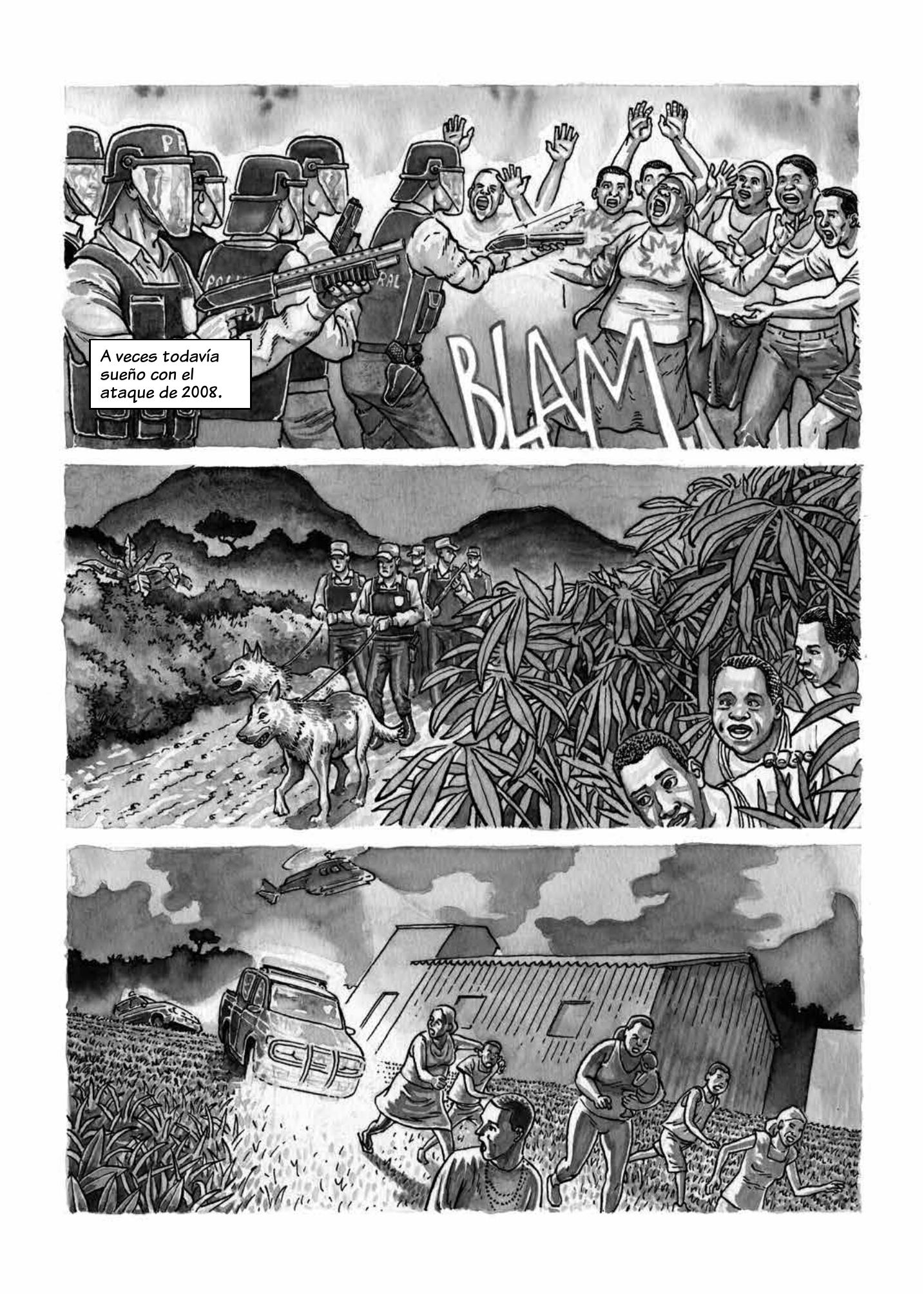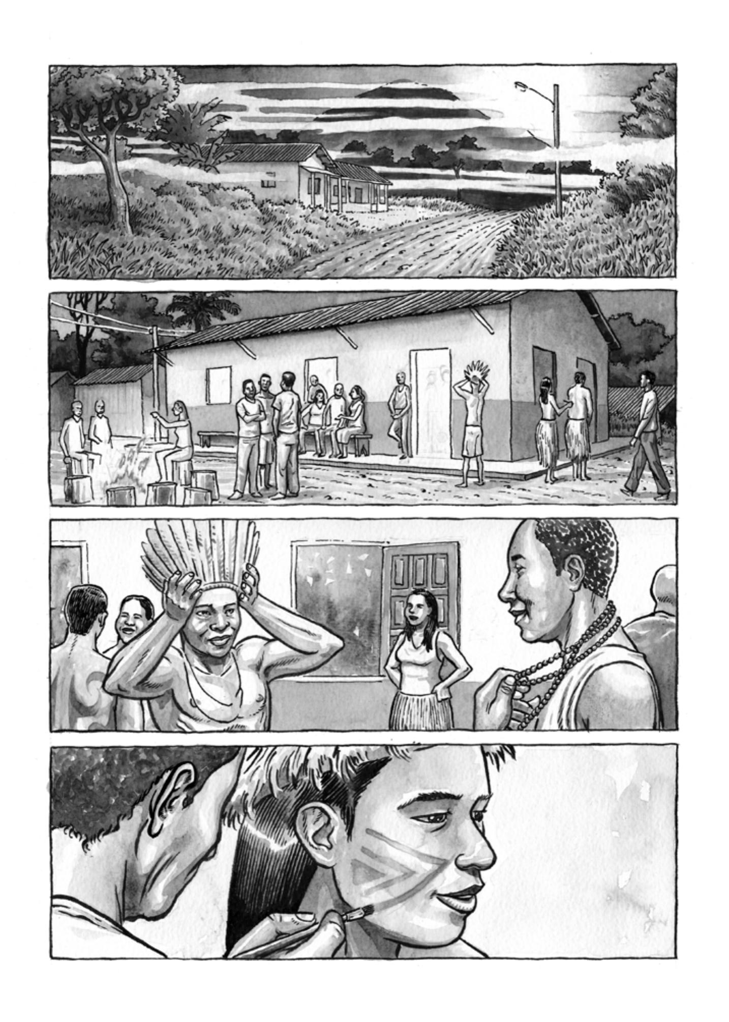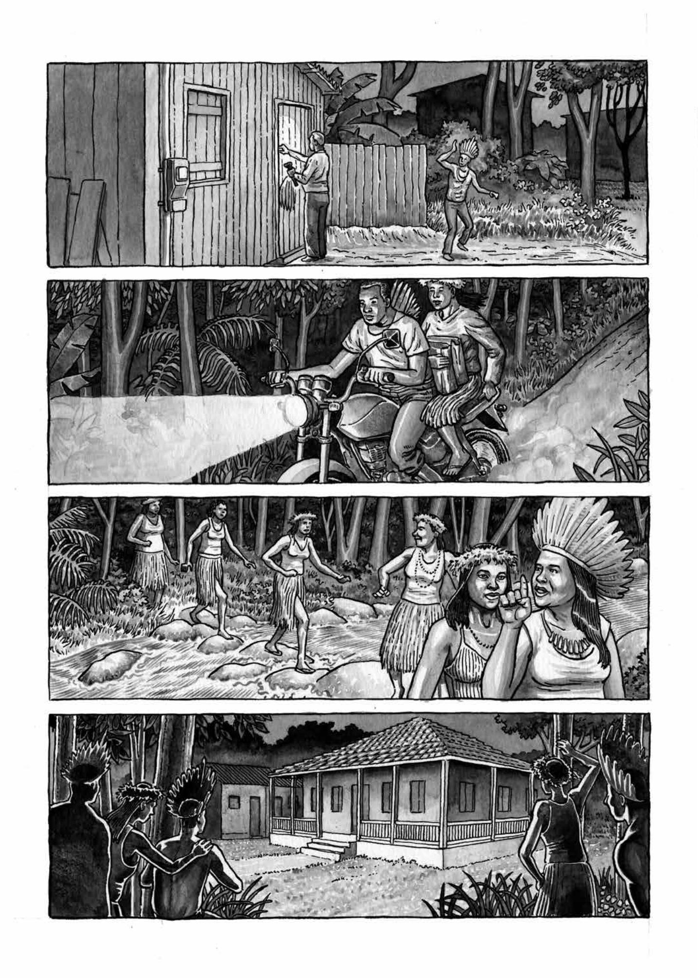 Publicado en 2020, la novela gráfica Los dueños de la tierra presenta siete historias realizadas en acuarela, basadas en narrativas recopiladas entre los Tupinambá de Serra do Padeiro, en el sur de Bahía (Brasil). Estas historias combinan elementos cosmológicos, recuerdos y relatos de acontecimientos históricos y contemporáneos de la lucha de los Tupinambá por defender su territorio. Aquí presentamos una de esas historias, “Recuperación”. Esta investigación fue apoyada por la Asociación Nacional de Acción Indigenista (ANAÍ).
