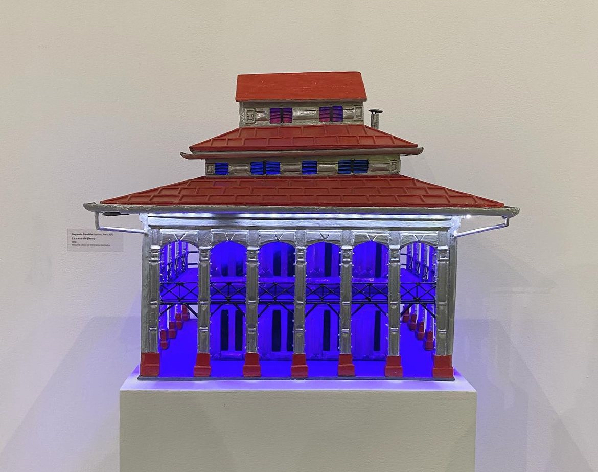 Segundo Candiño recria A casa de ferro, conhecida também como a casa Eiffel, a partir de materiais reciclados, transformando esse ícone arquitetônico de Iquitos em uma obra de memória crítica. A casa de ferro, pré-fabricada em ferro e erigida em 1890 durante a febre do caucho, simboliza o impacto do extrativismo e a intervenção estrangeira no coração da Amazônia peruana. Ao reinterpretá-la com técnicas artesanais e materiais cotidianos, Candiño está revalorizando o patrimônio cultural amazônico e destacando a tensão existente entre a modernidade imposta e os saberes locais. Esta maqueta ilumina o conceito de que o território não apenas é para habitar, mas também para recordar, resistir e reimaginar.